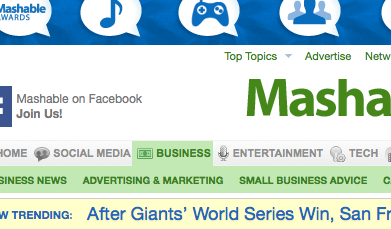 Today, we’ll be discussing Mashable.com articles about social media marketing. I love this site. Just about any question I have or my students might have about implementing social media policies is answered there. Except one.