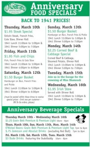 March 10 – 16th they’re celebrating 75 years as a family run business with 1941 meal specials. $1.95 for a Friday night fish and chips. $1.50 for a Saturday and Sunday burger baskets. And we walked right in at 5:30 pm and we’re able to pick which table we wanted.