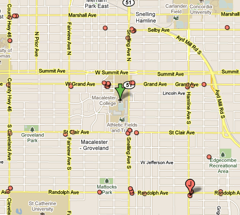 Given that I already spend a lot of time at St. Kate’s, we opted for the area around Macalester College instead.