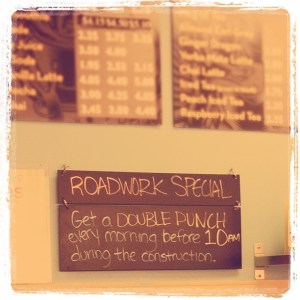 To reward their loyal customers, Espresso Royale is offering double punches on their popular Buy-10-Get-1-Free Reward cards for purchases before 10 am during “construction season” (e.g. now until the snow flies).