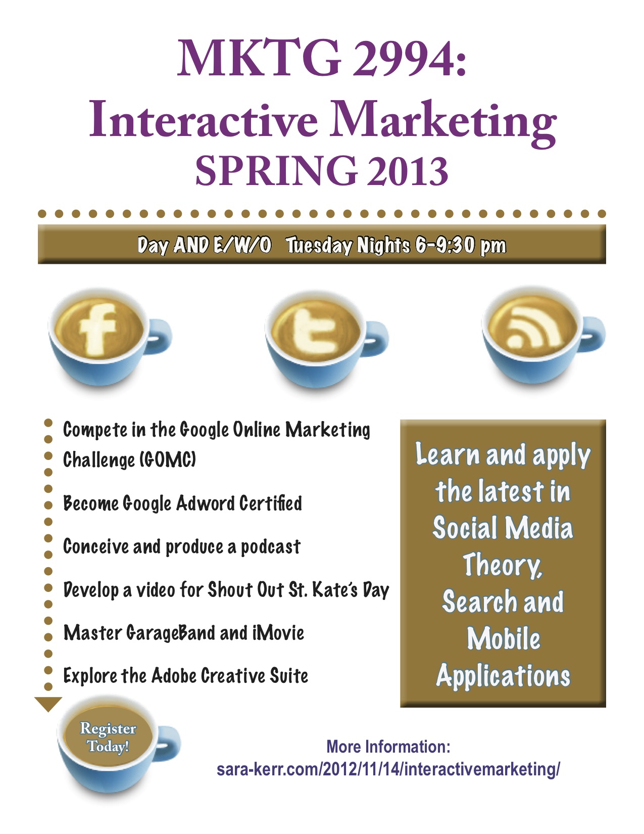 Given that I love social media and teaching, I’m excited to launch a new course at St. Catherine University spring semester: Interactive Marketing: Social Networks, Multimedia, and SEO.