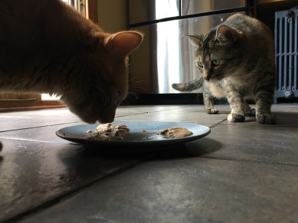 I’m fostering a beautiful black cat and her four babies via the Bitty Kitty Brigade. Unlike me, this mama is skinny! My chief pet scientists helped me make a special treat for her.